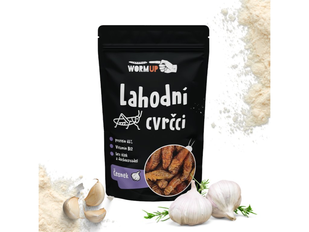 🦗 Cvrčci Česnek 20g – Pro milovníky česneku, kteří chtějí ještě větší říz.