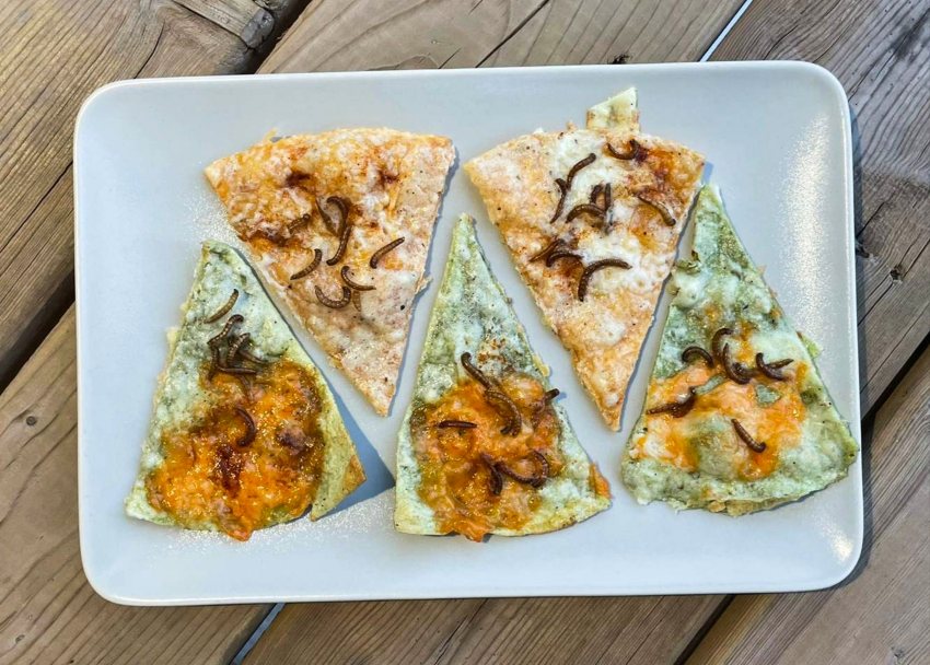 Rozehřej troubu na 180°C. Rozšlehej vajíčko a přidej do něj parmezán. Tortilly rozkrájej na 8 trojúhelníků a každý z nich obal v rozmíchaném vajíčku. Rozlož tortilly na plech vyložený pečícím papírem. Posyp je nastrouhanou godou nebo čedarem a na některé z nich přidej rozdrcený česnek, na některé chilli. Nakonec posyp Křupavými červíky s habanerem. Tortilly peč cca 10 minut.